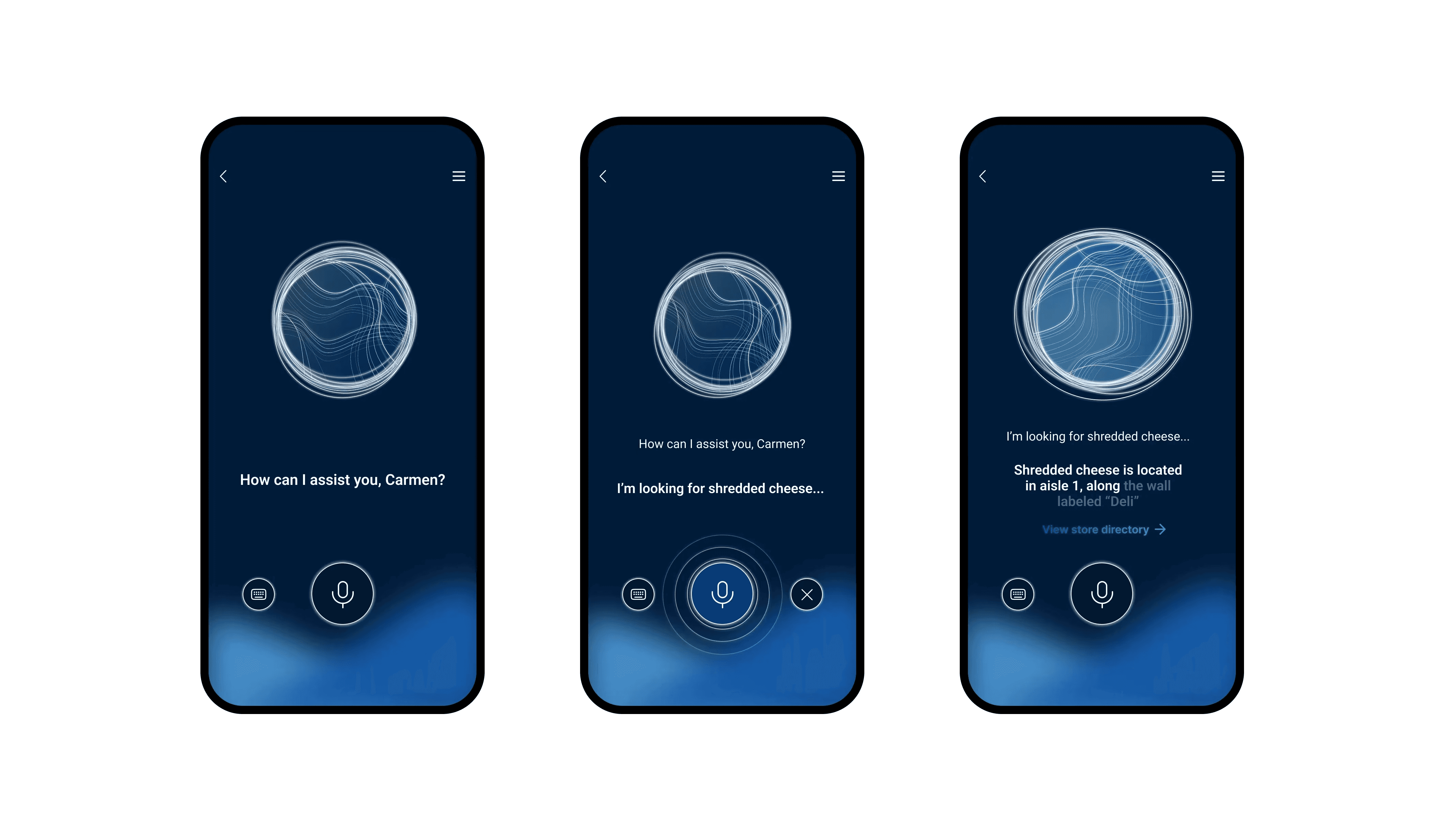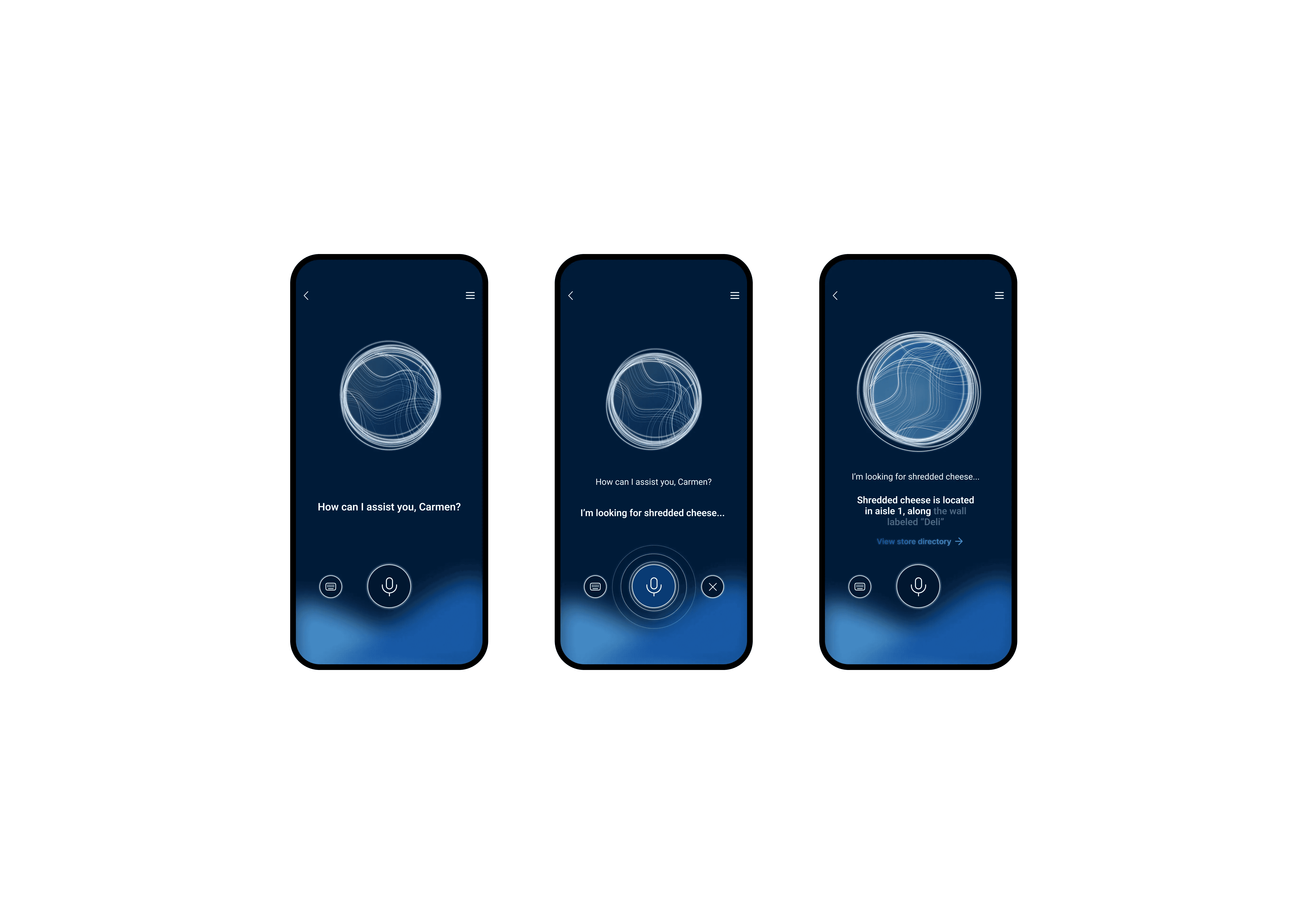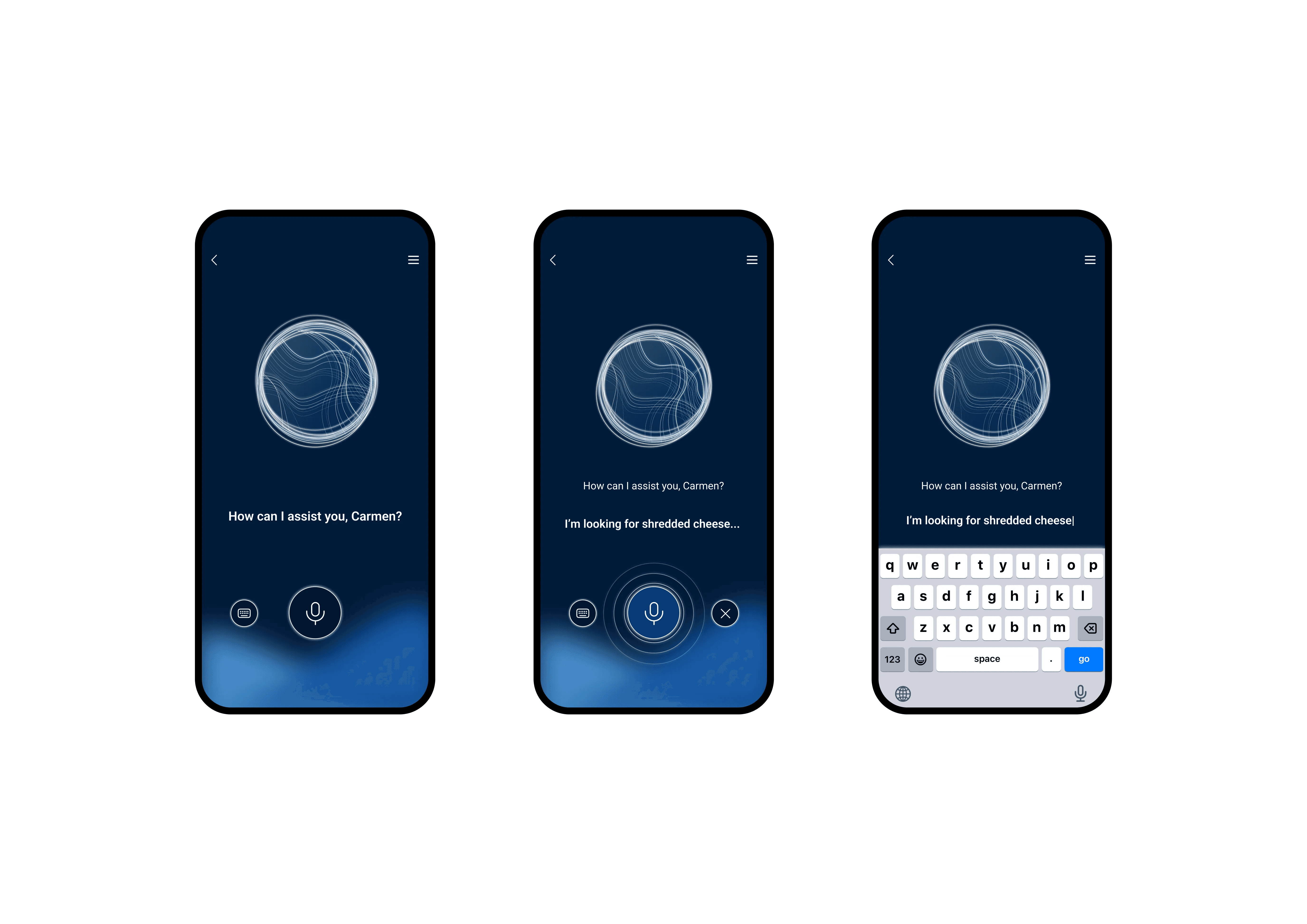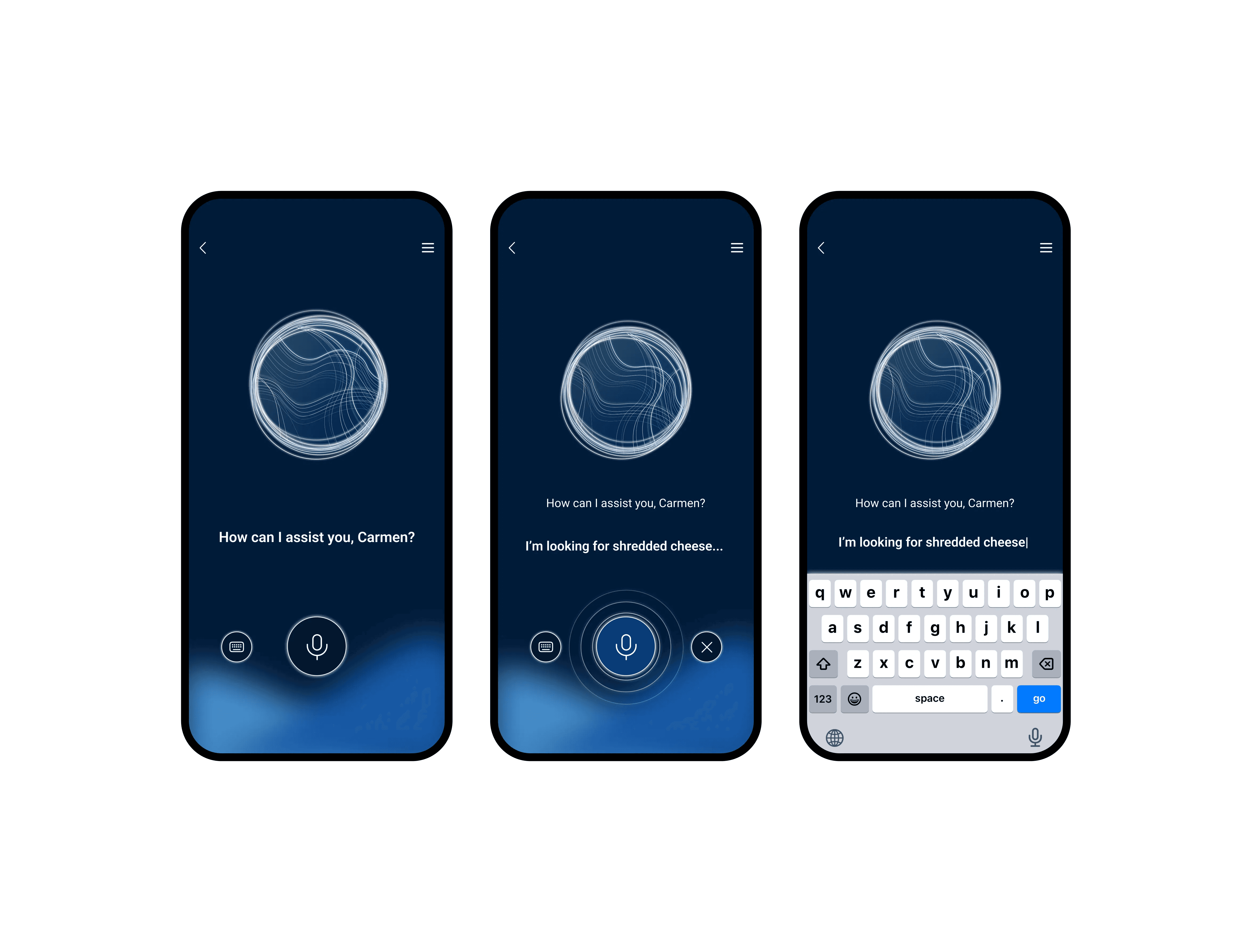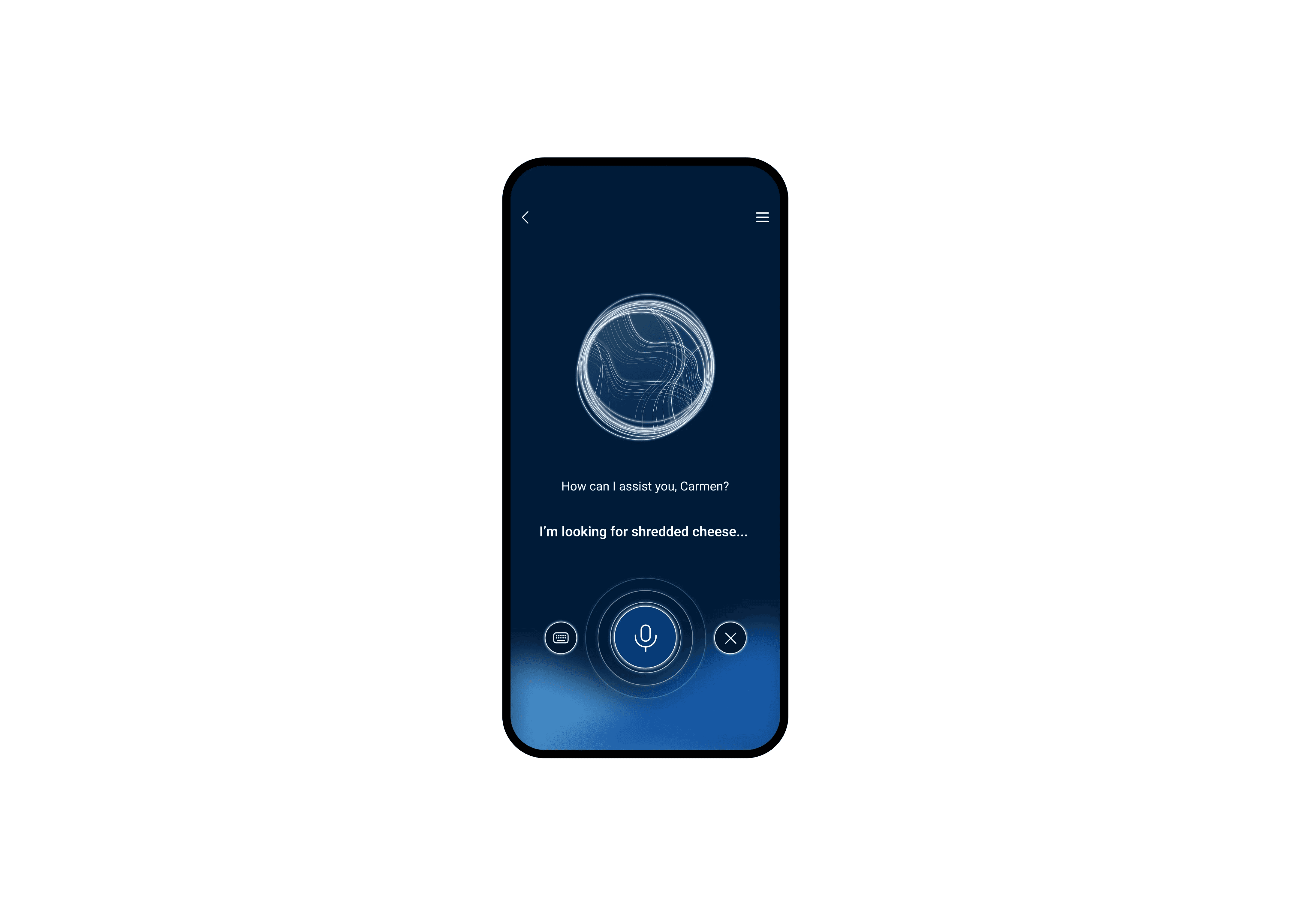 I designed a white label mobile application feature that utilizes voice-to-text AI to improve users confidence and independence in their grocery shopping experience.