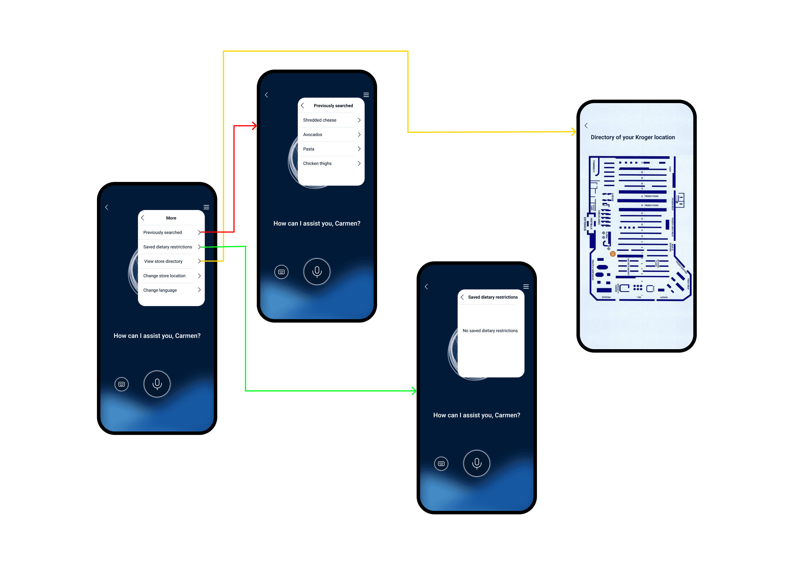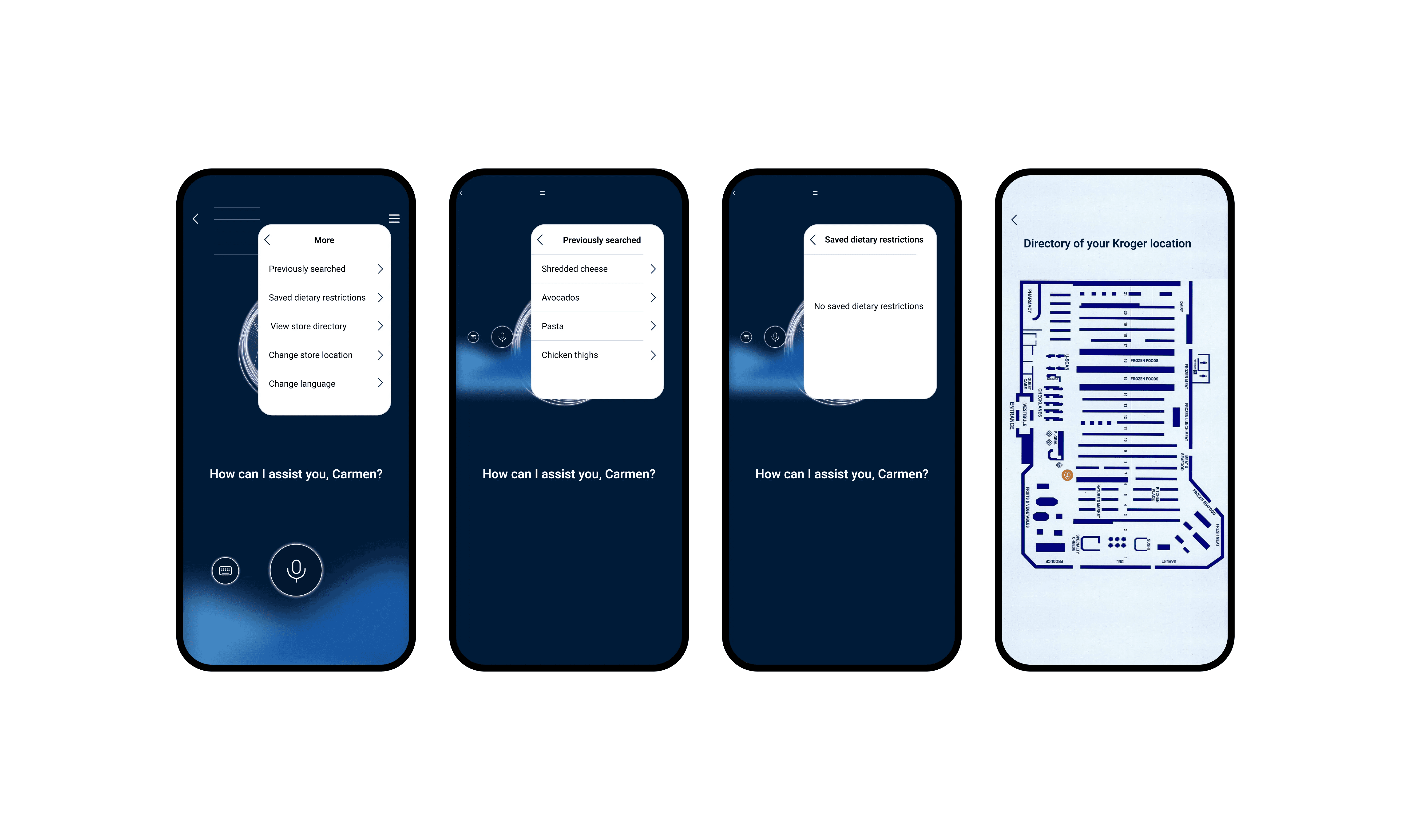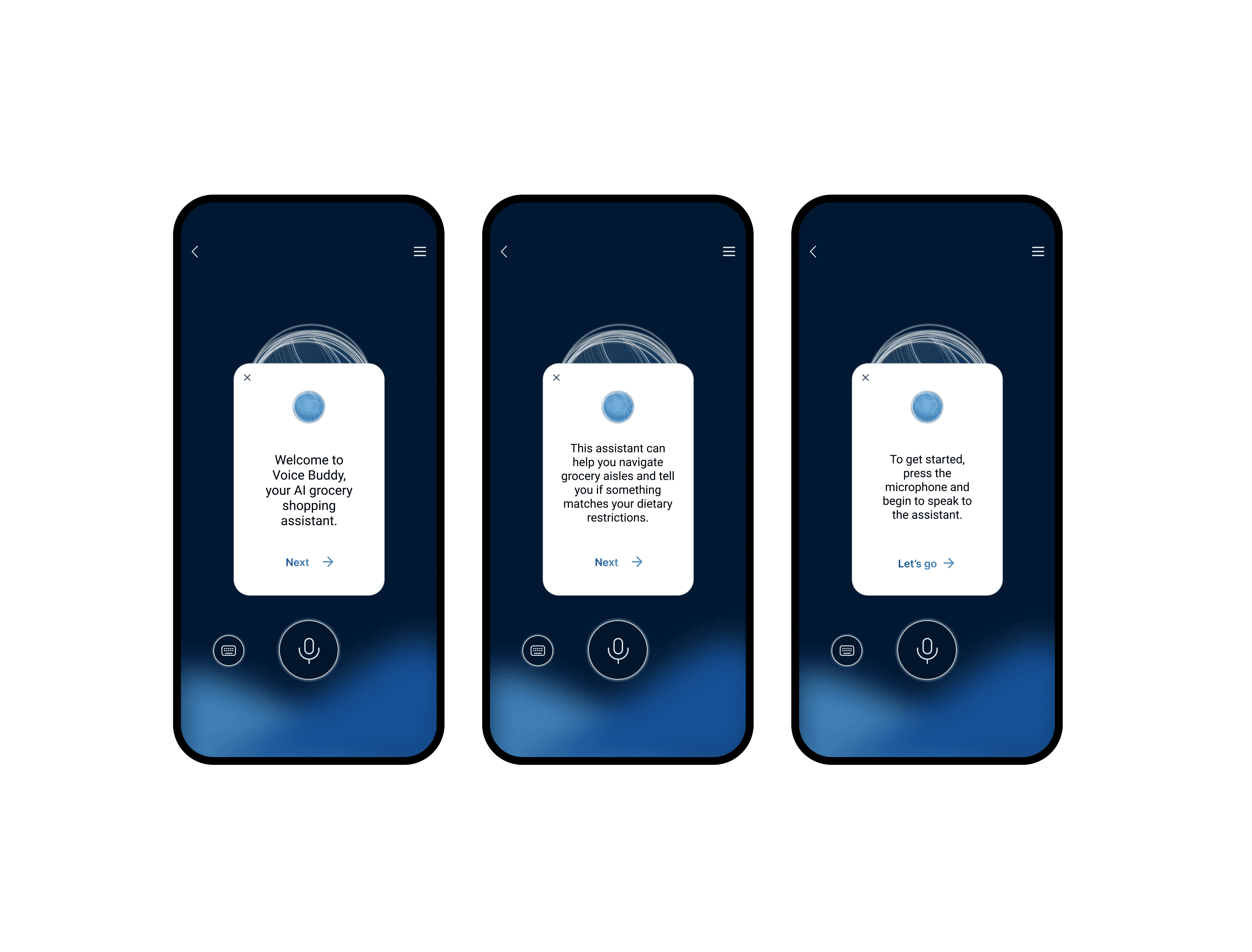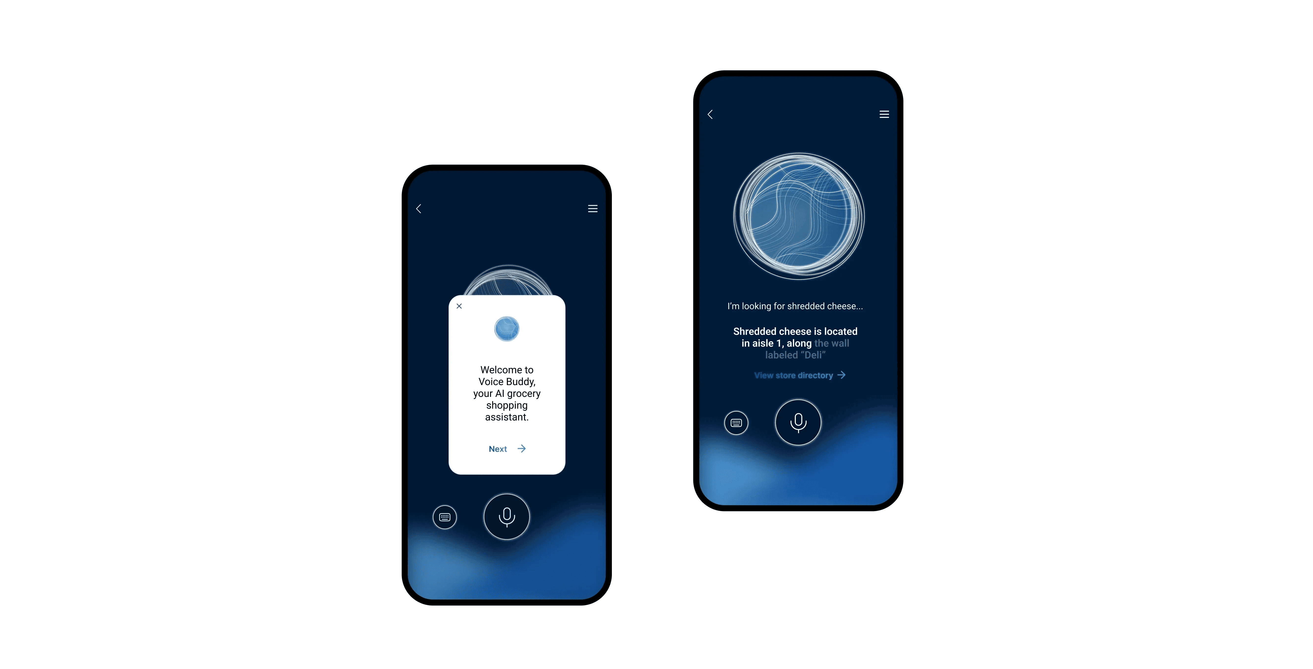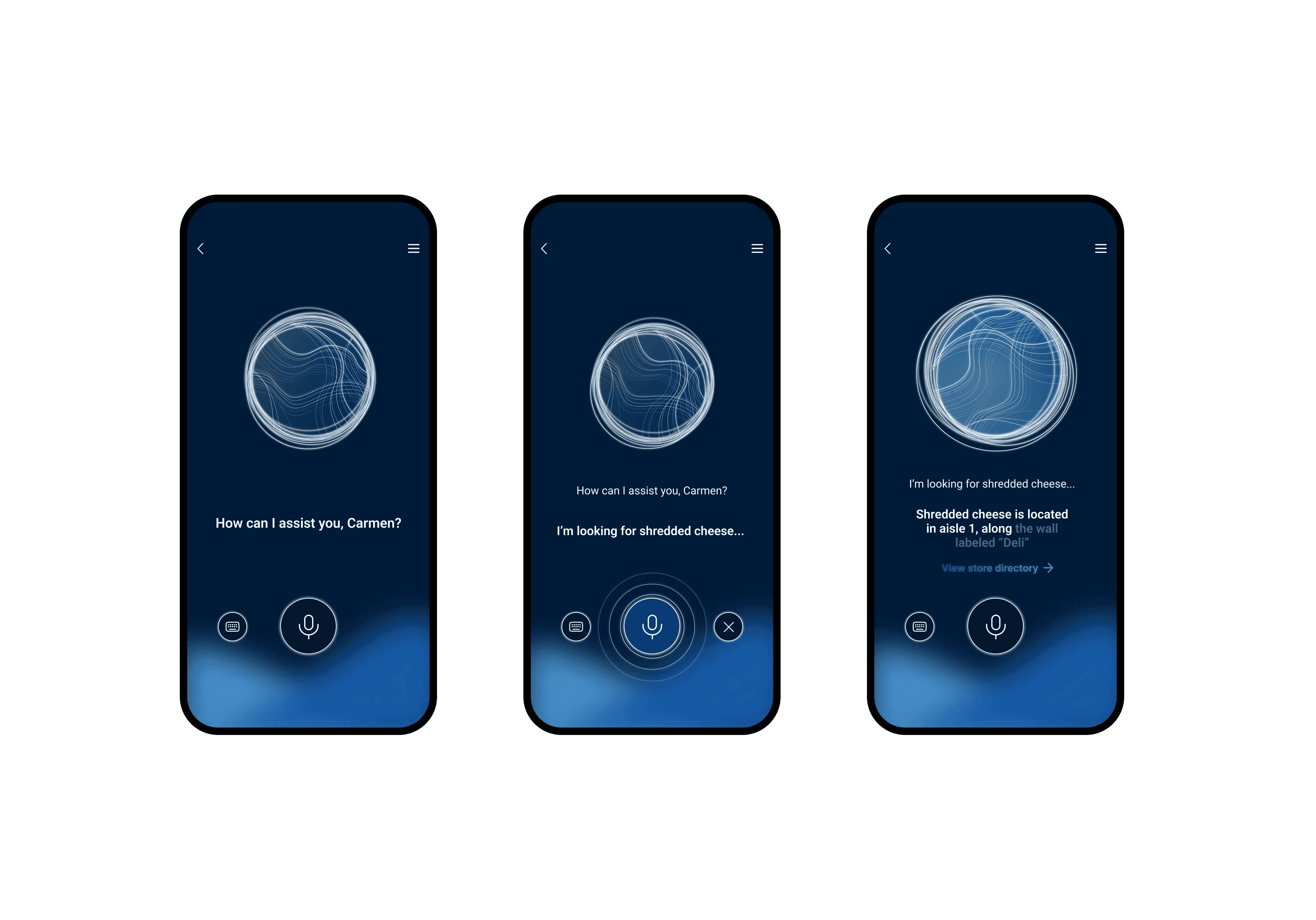 I designed a white label mobile application feature that utilizes voice-to-text AI to improve users confidence and independence in their grocery shopping experience.