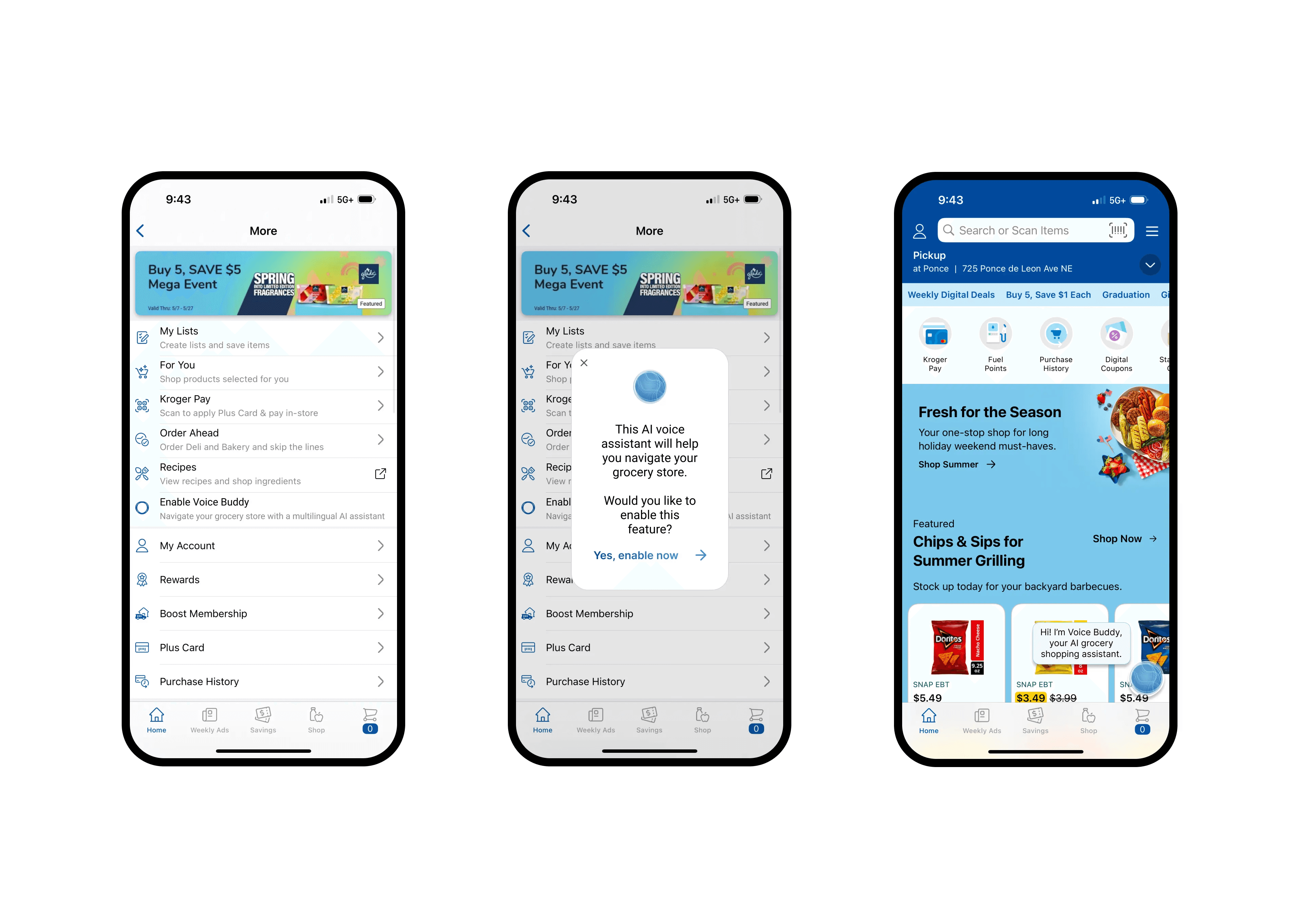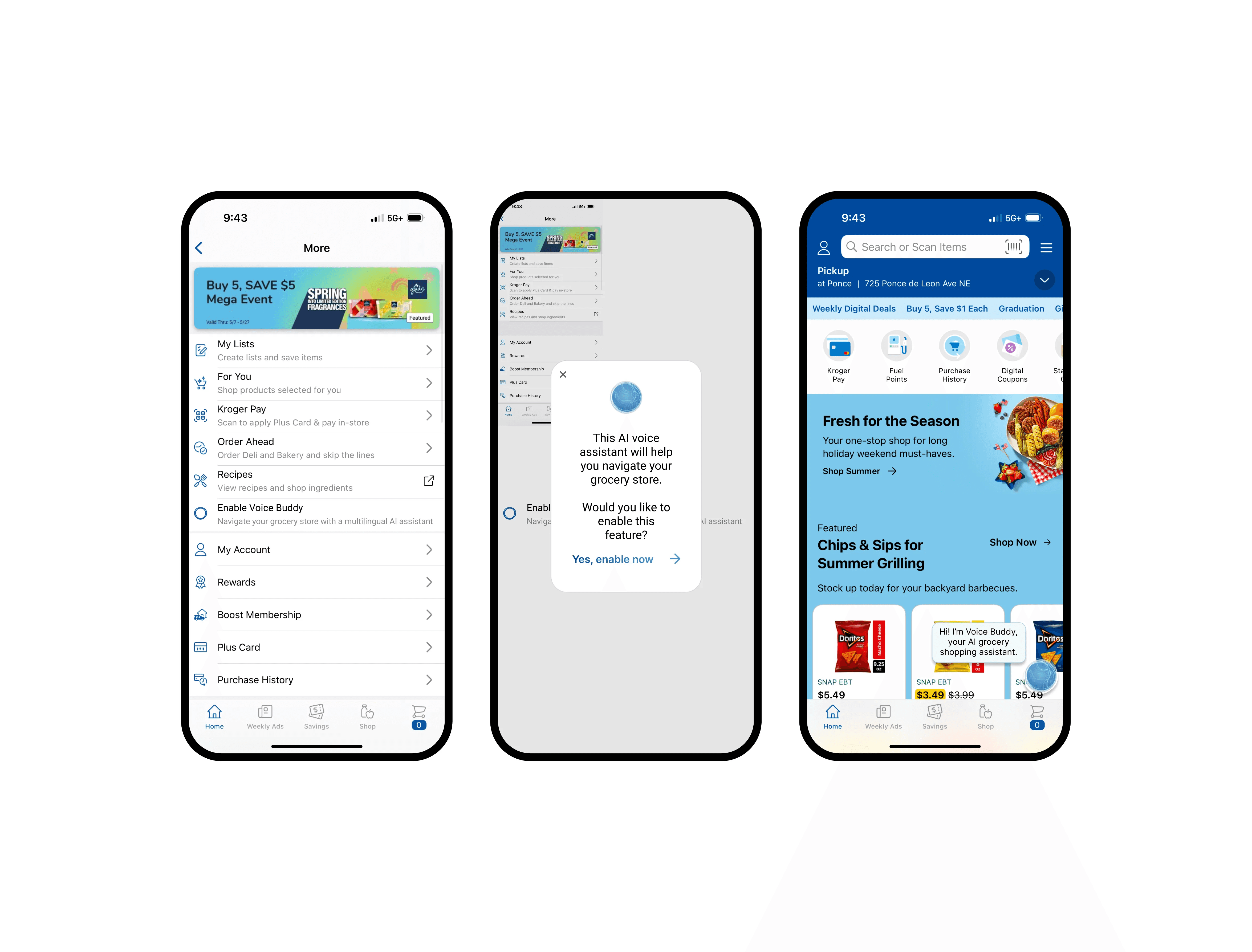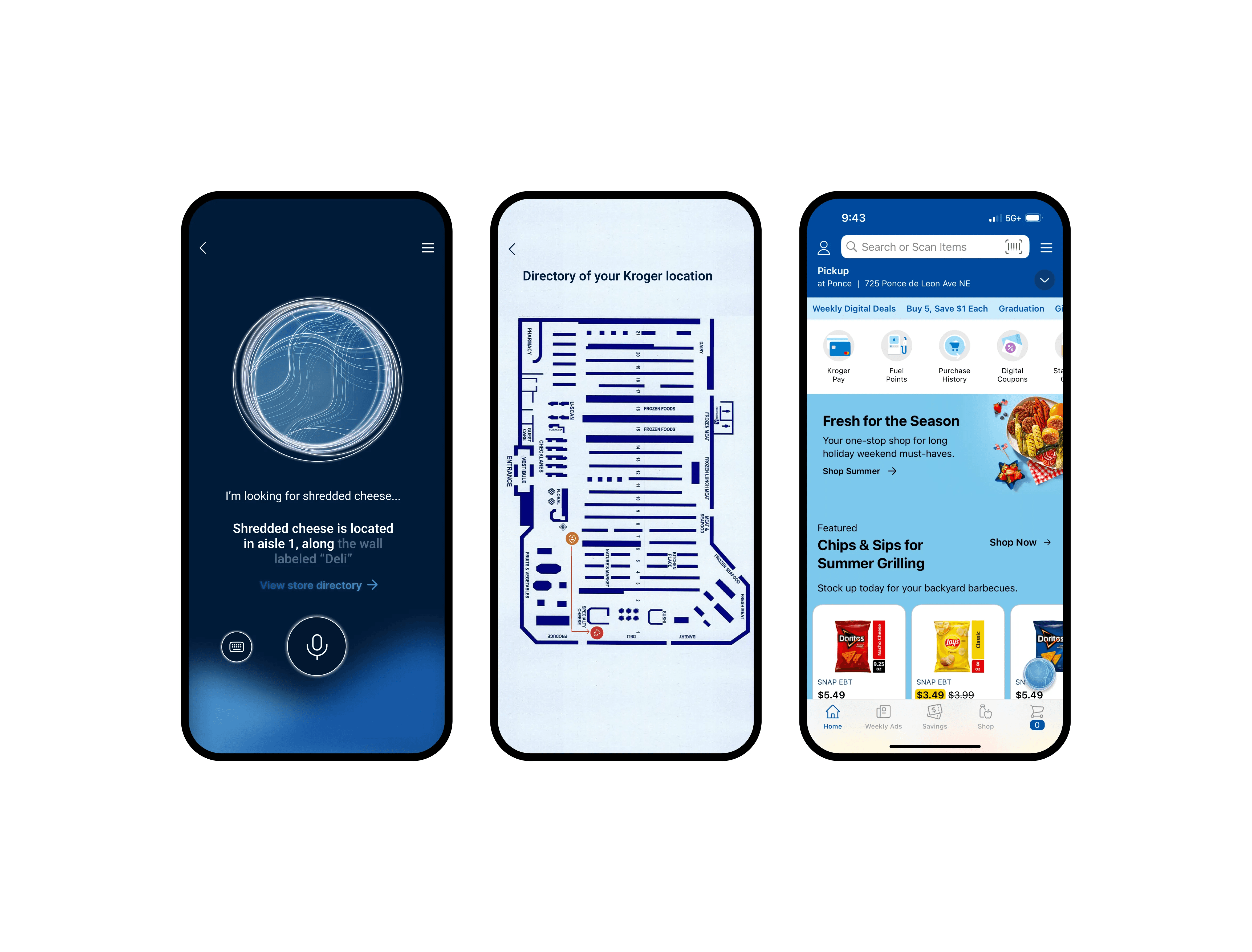 For the UI and branding, I used Kroger Publix, Walmart, and Sam’s Club to demonstrate scalability for the app feature as a white label product*