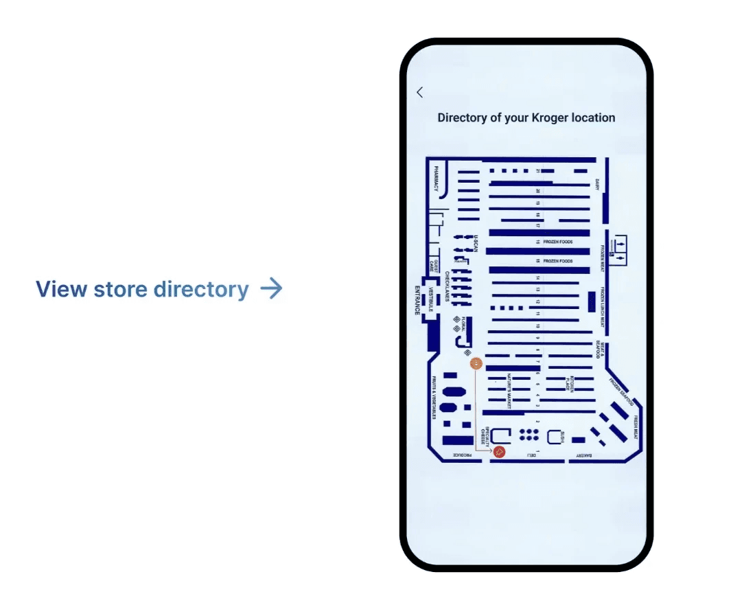 Giving users the option to view grocery store maps to navigate the store after hearing where it is.
